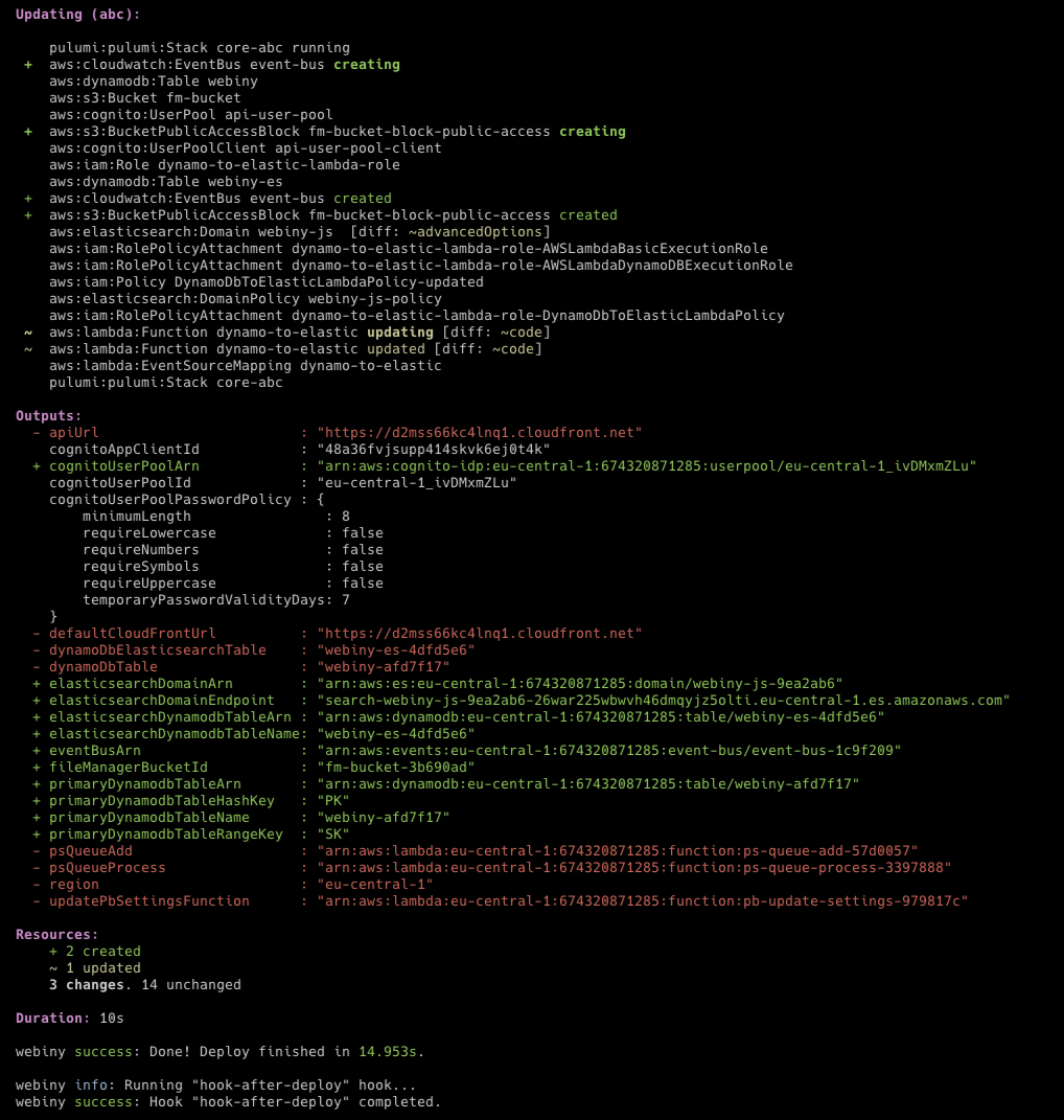 Once the script has completed the state files migration, we’re ready to start deploying our new Webiny project, application by application.